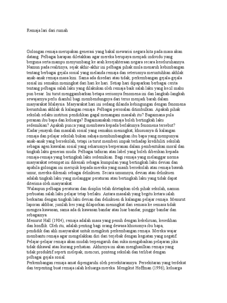 Masalah Lari Dari Rumah Di Kalangan Remaja Pdf